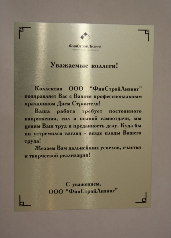 Проводите конкурс? Устраиваете показательное награждение? Простейший вариант награды бумажная грамота советского образца на казённом бланке. Но награждать людей такими бумажками не приносит никому удовлетворения. Ни организаторам, ни награждённым. Можно, конечно, сделать грамоту с оригинальным дизайном, отпечатать на хорошей бумаге. Но всё-равно это останется бумагой. Для этого лучше всего подготовить подарочные дипломы, подарочные сертификаты, наградные дипломы и письма, поздравительные адреса, чтобы они были украшением интерьера и напоминанием о достигнутом успехе, о сданном трудном экзамене. Изготовление наградных дипломов для таких целей реализуется на тонком алюминии по технологии "Металлофото". Фотографическое качество графики будет привлекать внимание на расстоянии и удивлять разрешающей способностью при близком рассмотрении. Металлический лист крепится на плакетку с деревянной фактурой. И представительская вещь готова. Такой диплом или сертификат может вручать сам руководитель компании. Можно устроить внушительную презентацию, которую запомнят все участники этого шоу. Вы, наверное, уже встречали такие дипломы в различных офисах. Они производят впечатление жутко дорогих вещей. Однако цены на такие заказы вполне разумны. Приходите, обсуждайте проекты, заказывайте. Мы сделаем точно то, что вам нужно. Наши дизайнеры посоветуют, как лучше реализовать ваши проекты.